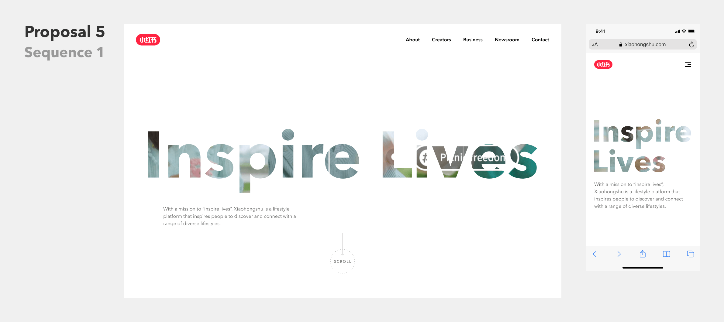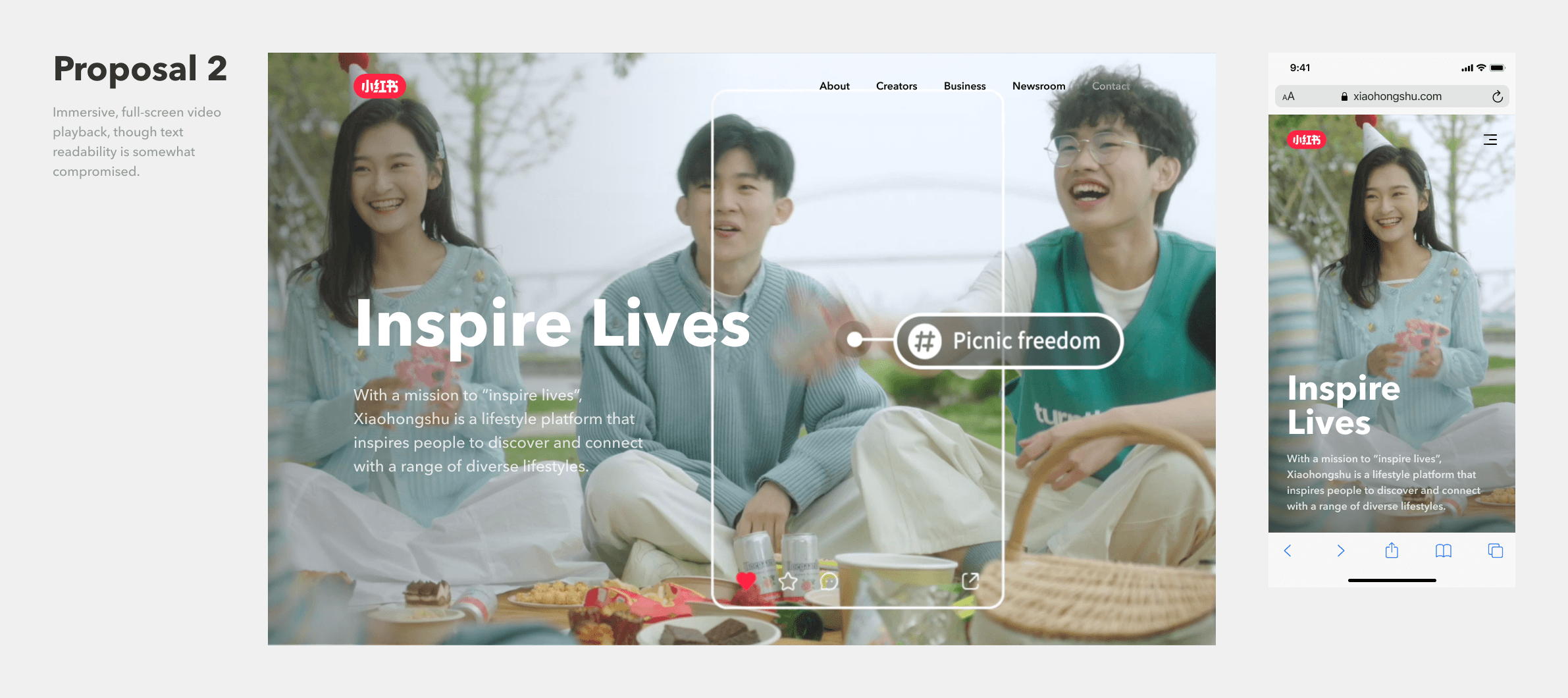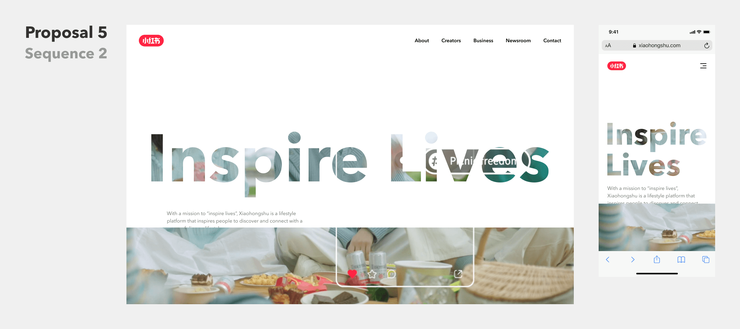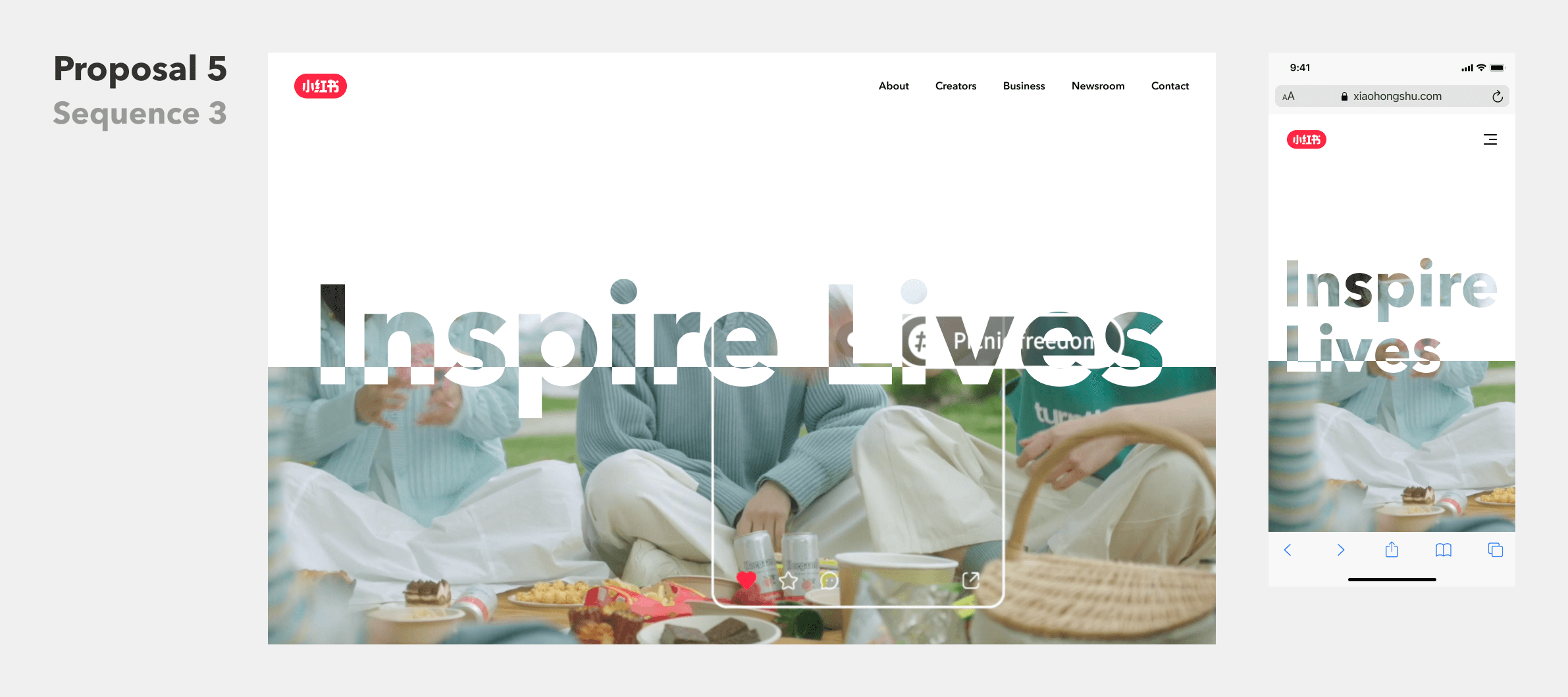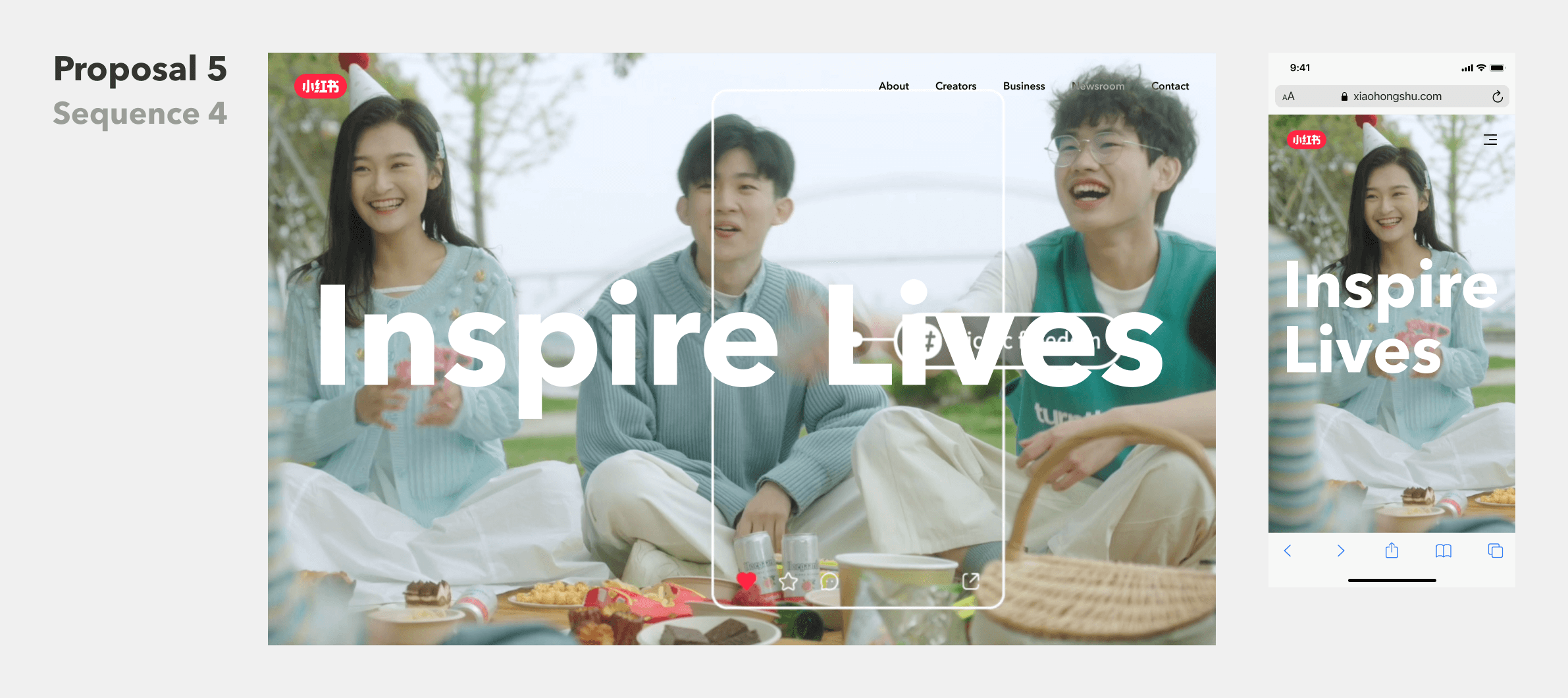 This led to my final proposal: the “Inspire Lives” slogan would act as a shaped window, offering a glimpse into the vibrant lifestyles that REDnote celebrates. As the user scrolls further, the video gradually unveils itself, expanding to full screen—an immersive moment when a whole new world, that you could explore with REDnote, is right in front of your eyes.