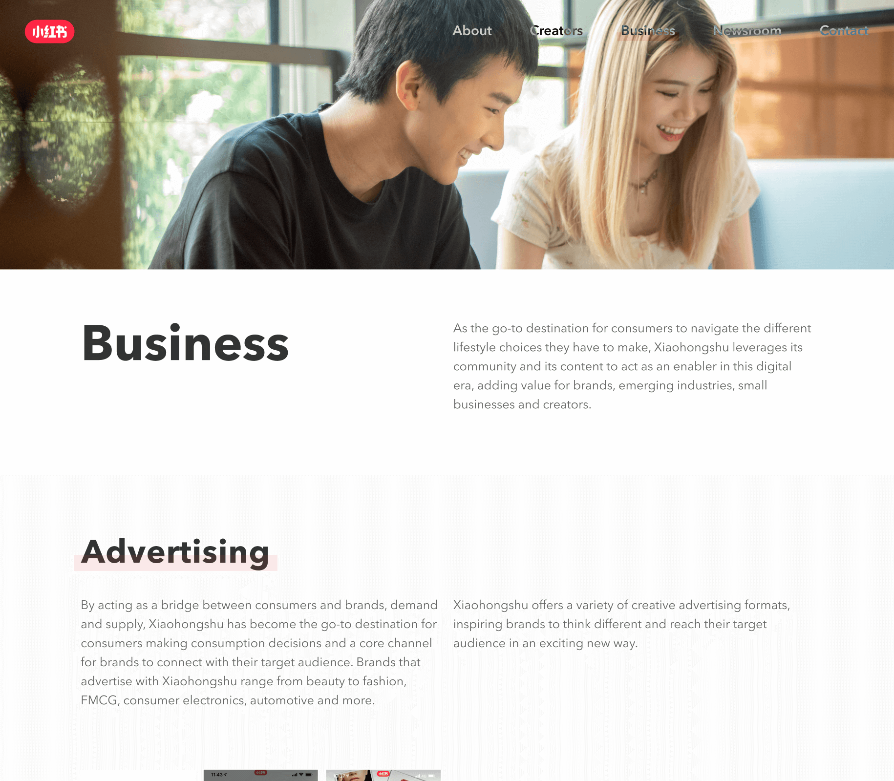 To simplify the learning curve for understanding REDnote, we introduced four dedicated subpages: Creators, Business, Newsroom, and Contact, each telling a part of our story.