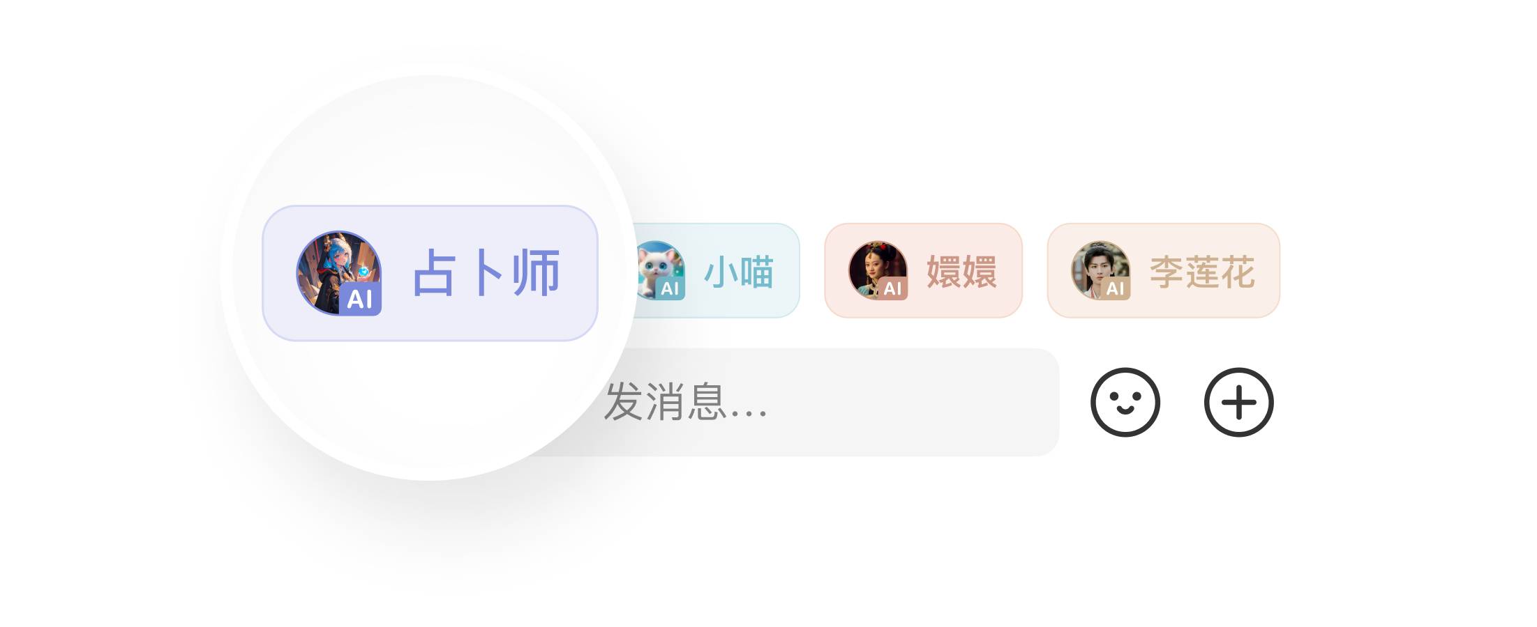 AI chatbots are positioned in the quick access bar above the input box, making interactions effortless and intuitive. The use of theme colors enhances visual differentiation, ensuring that AI chatbots remain instantly recognizable, and feel naturally integrated into the group chat.