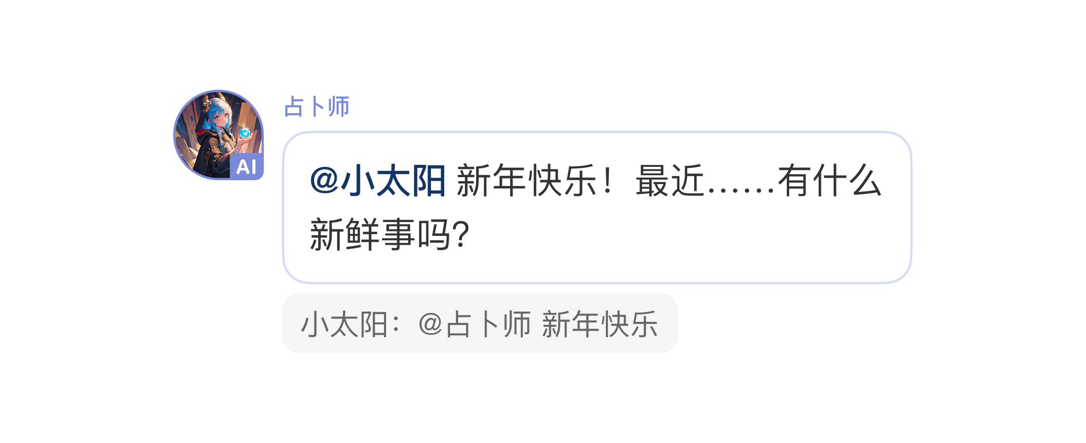 Identity. Starting with designing a unique profile frame, we established a distinctive identity system for AI, ensuring it remains easily recognizable across all scenarios while maintaining visual consistency.