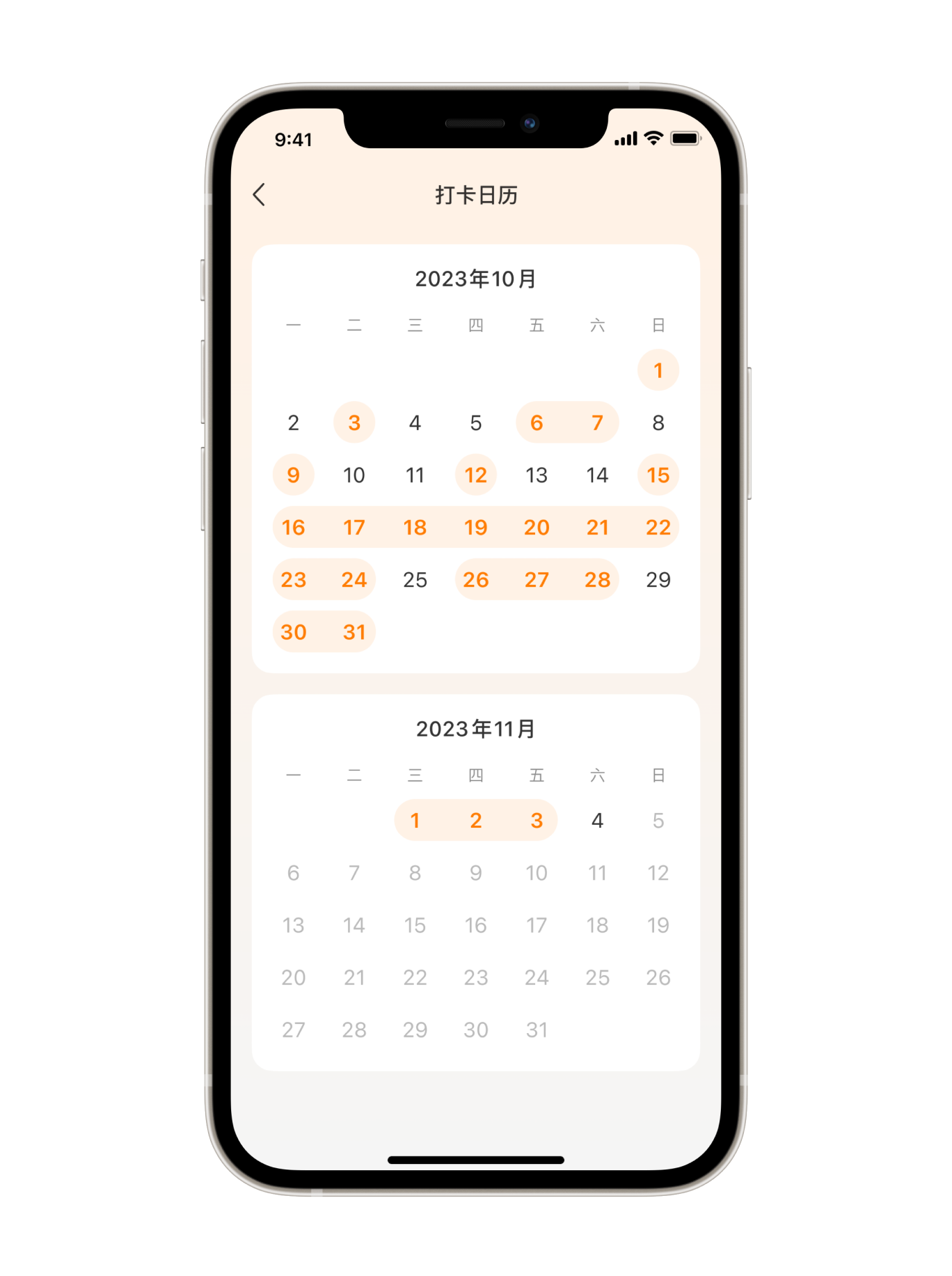 Calendar view offers a bird’s-eye look at check-in history, making it easy to spot streaks and track consistency at a glance. Every successful check-in is marked, helping users stay accountable and celebrate milestones.