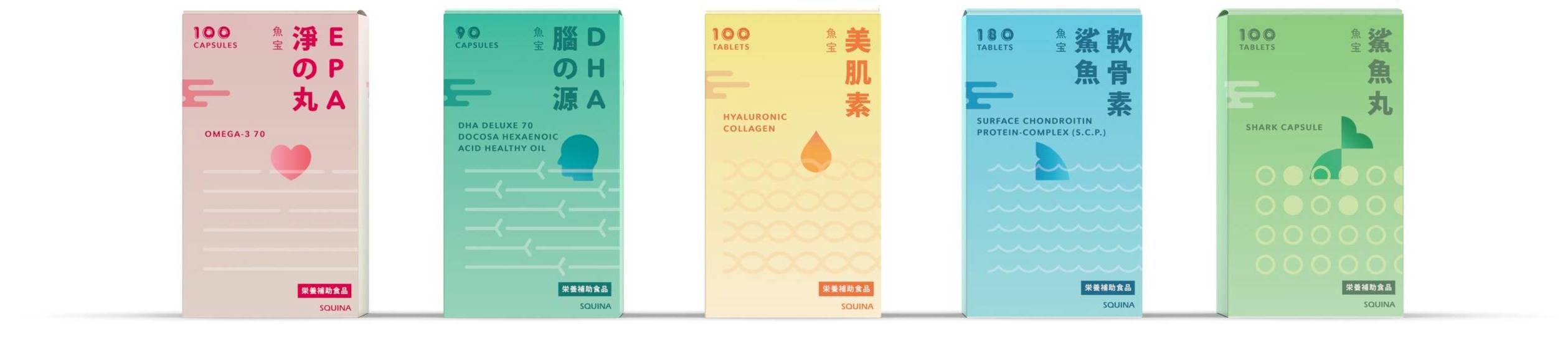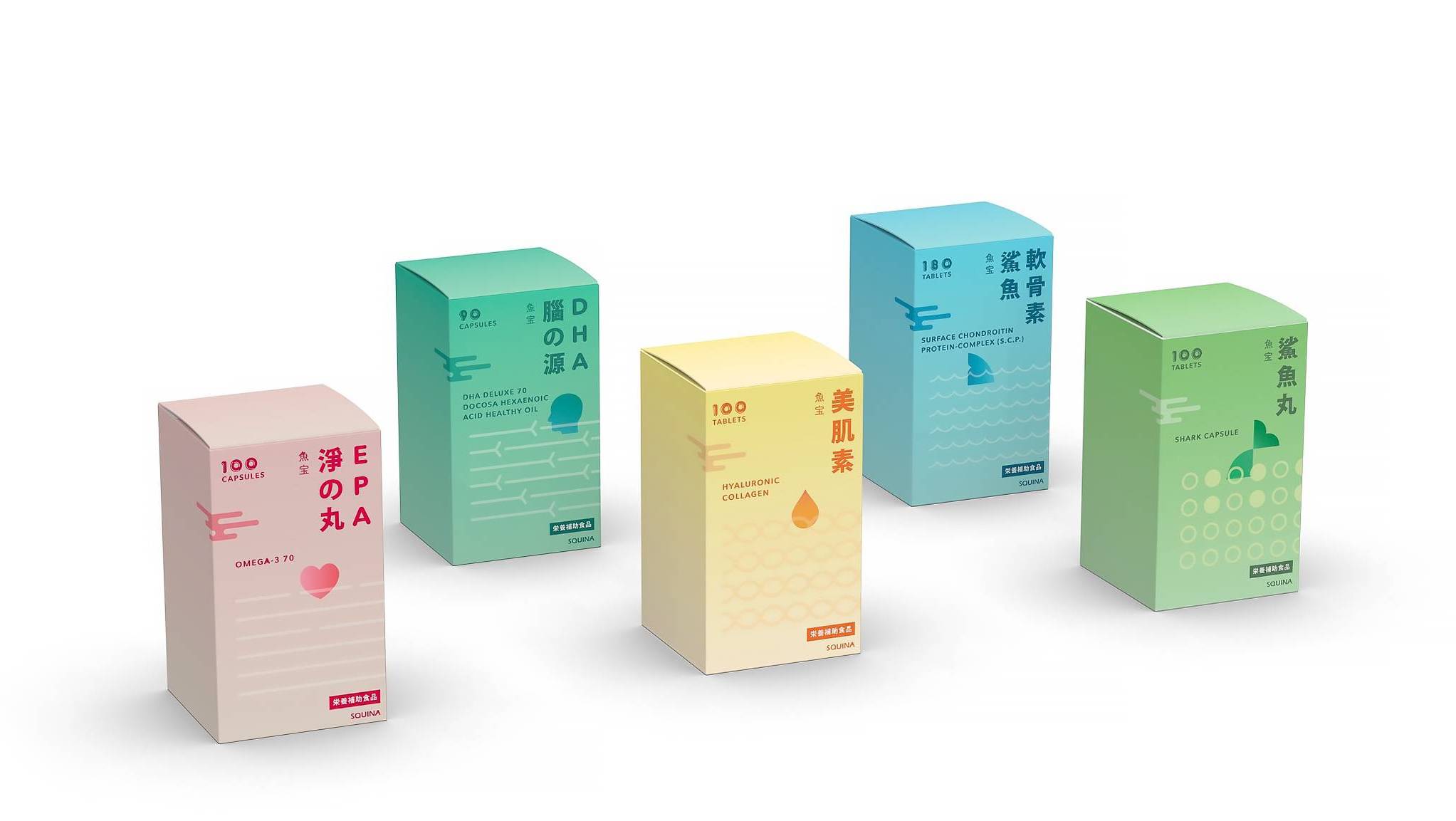 “魚宝” is a natural health food series of Squina, originated from Japan. “魚宝” means “Treasure of Fish” in Japanese, as the product is made from fish in Japan. The health food series is targeted for the elder group that lacks necessary nutritions. The series has been on market for several years and become Squina’s flagship product in Hong Kong market.