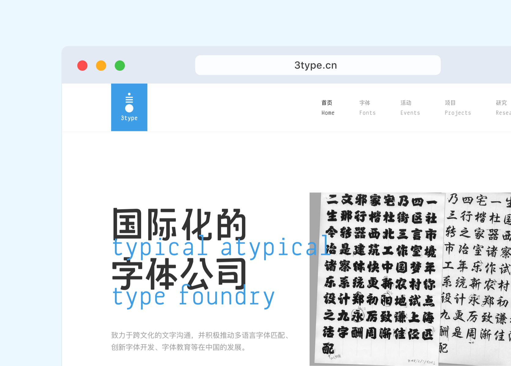 Though I’ve been a long time typography enthusiast, but to design typefaces is not really on my plan, until I met the friends of 3type. In summer 2017, I signed up for 3type’s TypeSchool in Shanghai and started my journey on type design. We soon became friends and I joined 3type to design typefaces and to be their developer. During these two years, I designed sereval typefaces for general customers and enterprises. Type design is really quite fun.